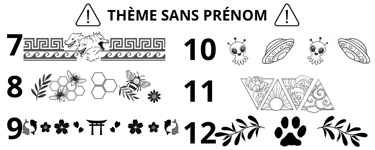 Prénom du chien ou écrivez SANS PRÉNOM si vous avez choisis un thème sans prénom .
