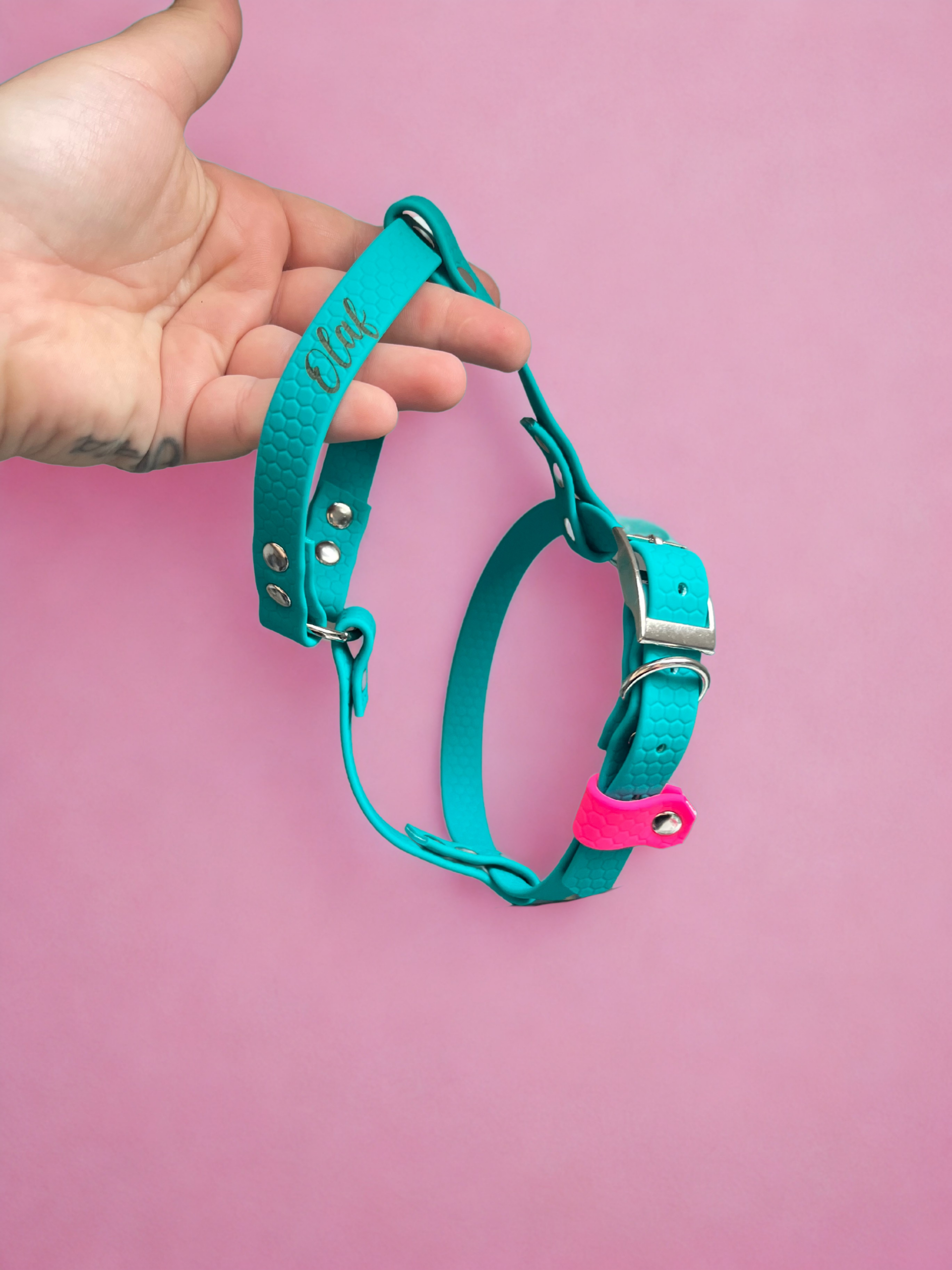 Couleur(s) ( 1 , 2 ou 3 couleurs , merci de préciser quelle couleur vous voulez sur quelle partie du harnais ! ) Exemple : Encolure : bleu pastel Poitrail : rose pastel Dorsale et ventrale : rouge